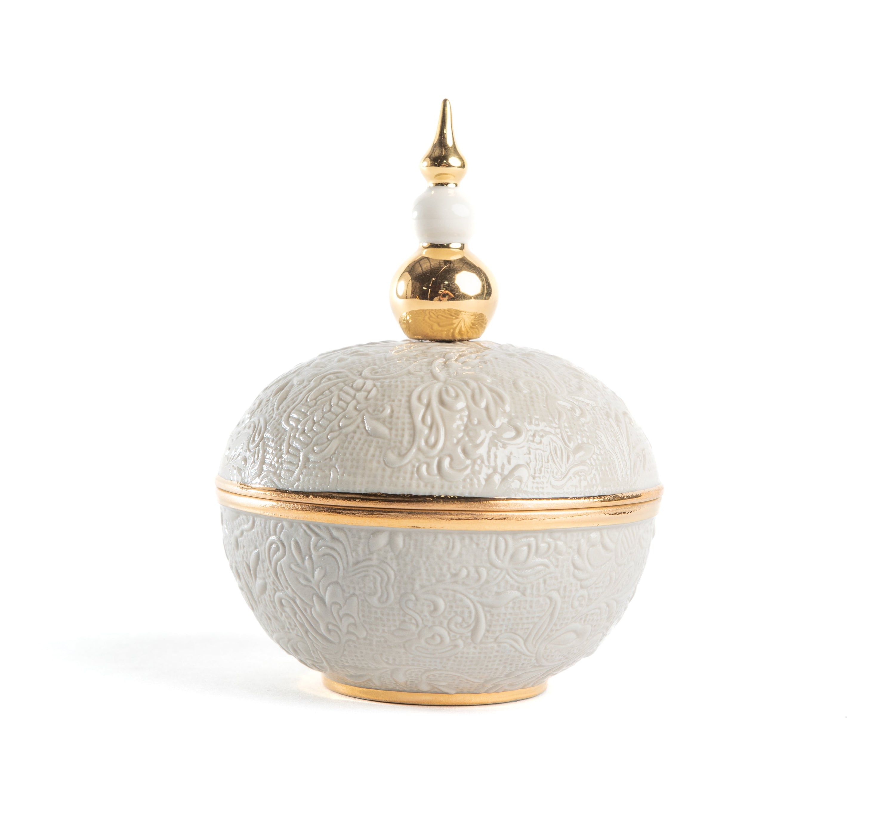 شمعدانات Haute Couture من Catti من الخزف الفاخر، مصنوعة يدويًا، ومزينة بألوان أنيقة ومواد رائعة.