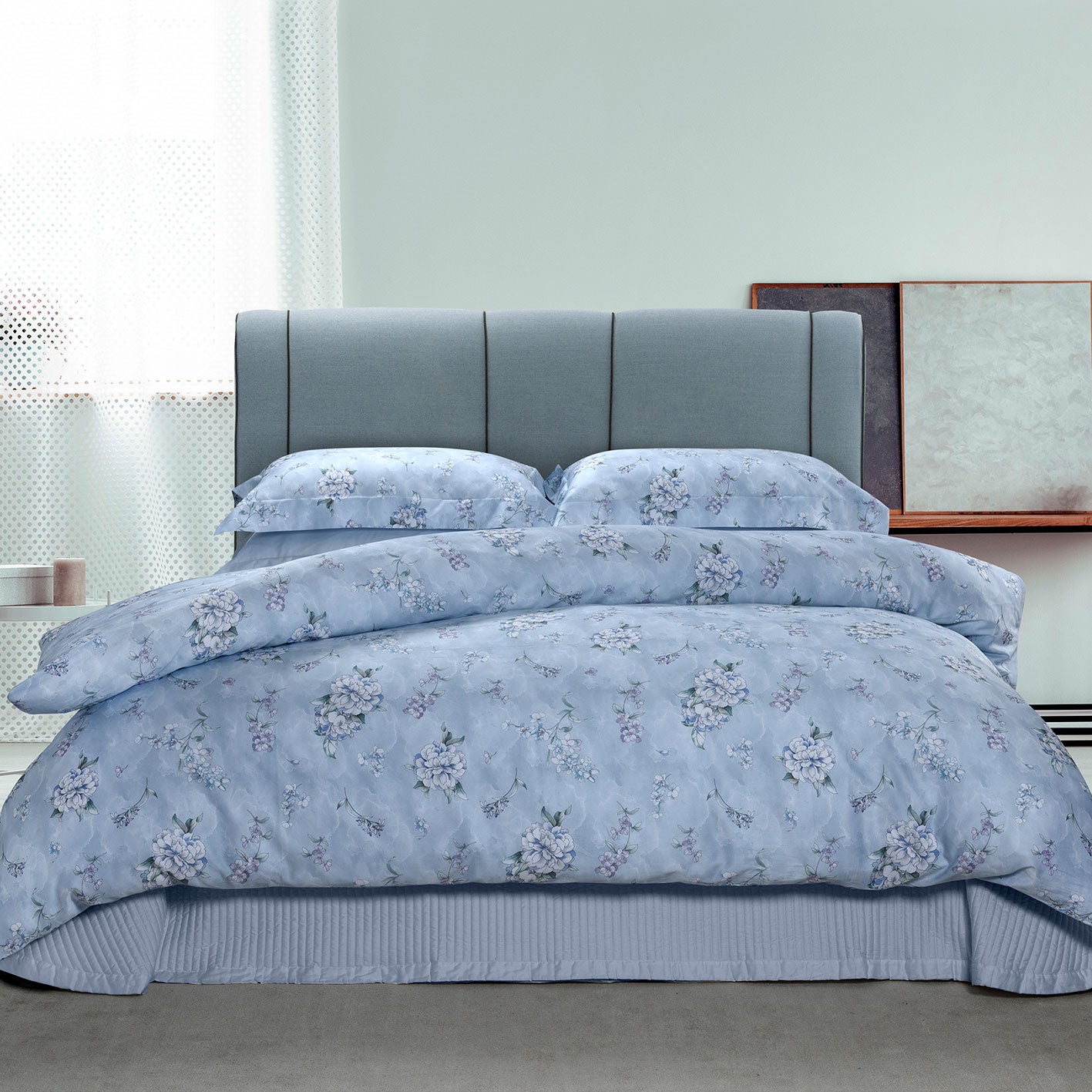 "تتميز مجموعة بتصميم أصلي يتكون من مجموعة مبهجة من الزهور المستنسخة على خلفية بيضاء أو ملونة تضفي ثلاثية الأبعاد على التركيبة بأكملها. وتكتسب الطباعة على قماش الساتان القطني عالي الجودة لمعانًا خاصًا وثلاثية الأبعاد. الأبعاد، وذلك بفضل العمل الحكيم للحرفيين المتخصصين في الطباعة عالية الجودة مع تأثير بيئي منخفض