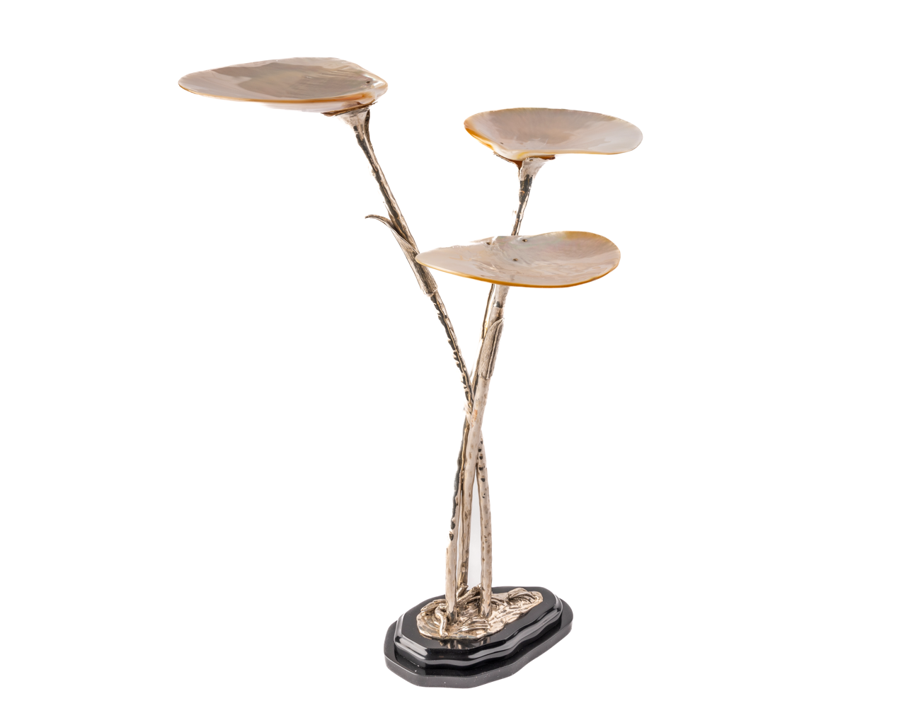 Since 2000, when Arden Classic started creating decorative art pieces, it has distinguished itself for fine craftsmanship, a keen attention to detail, and its alluring design direction: a marriage of nature and finely-tuned artistic techniques. Based in Cebu, Philippines, design artist ARDEN SIAROT takes natural elements, and works on these with his innate creativity and prodigious knowledge of electrical and mechanical engineering. From this combination, a collection of refined and elegant works of art emerges: metal sculptures that perfectly hold and embrace the shell and other organic components.