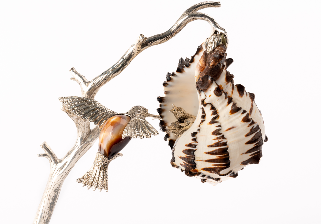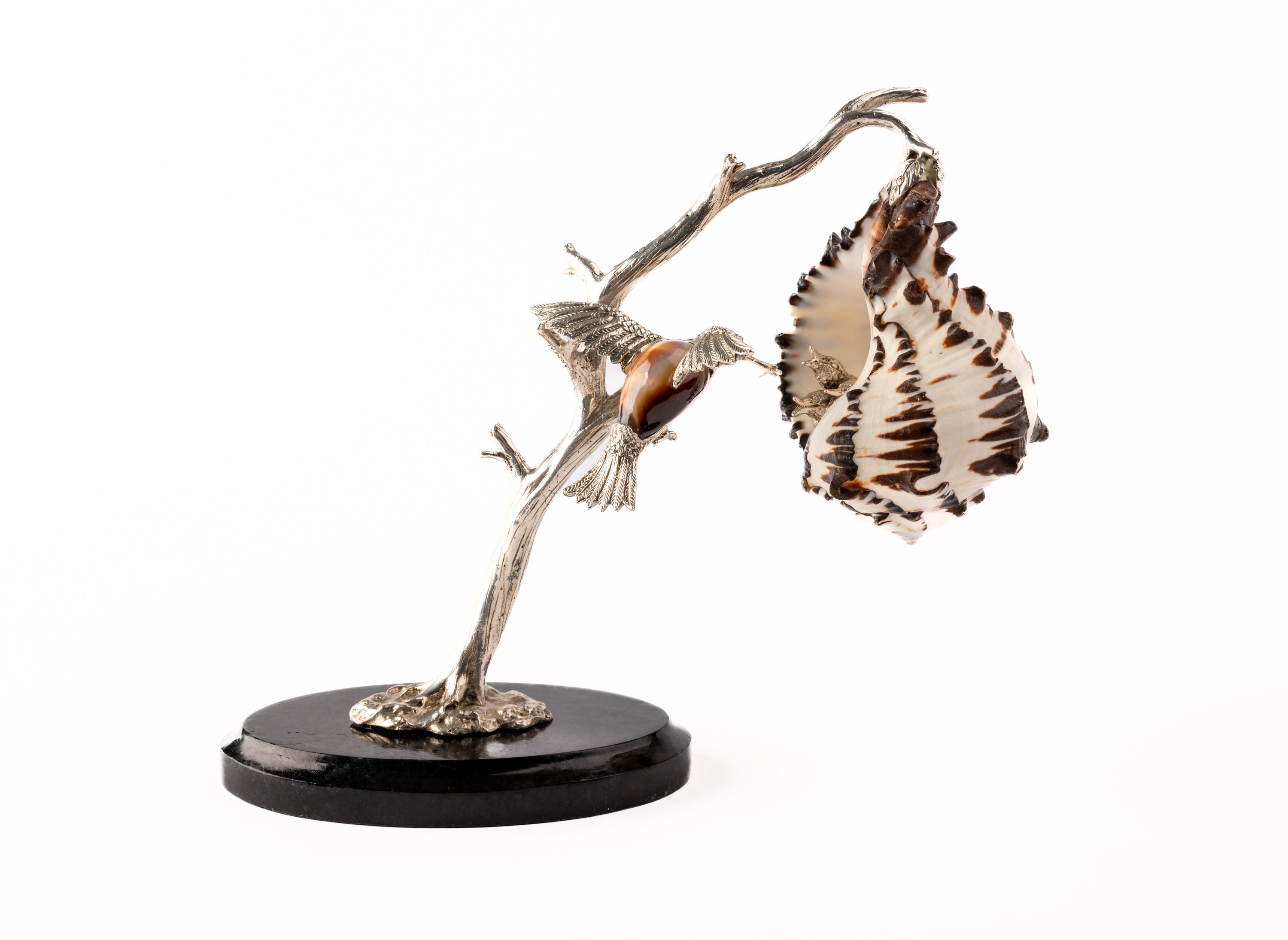 Caught in a tender moment, the hummingbird attends to her brood of chicks. It could be the softness of the gaze, the lightness of the mother's touch or the love that emanates Arden masterfully breathes life to the pureness of this interaction. A piece that evokes memories of lullabies and gentle kisses, it reflects a mother's devotion to her young.