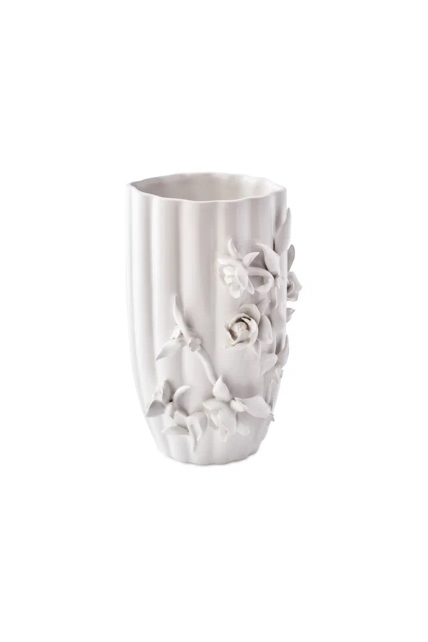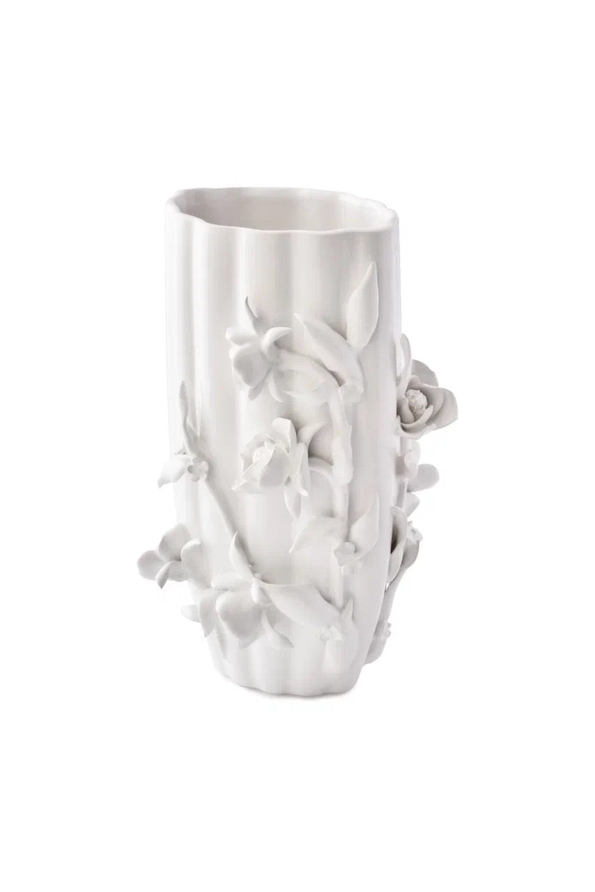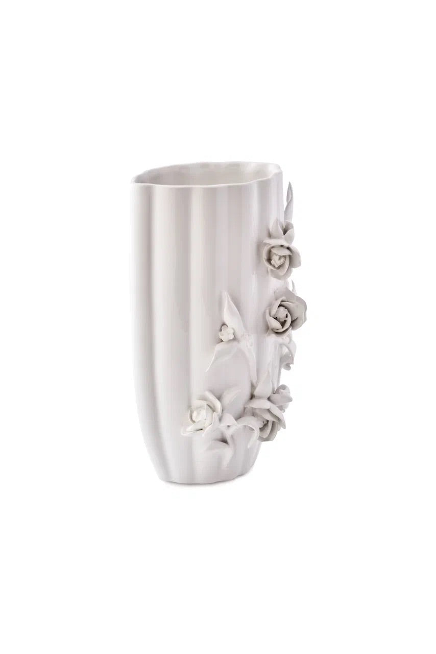 This elegant white vase is an exercise in pottery artistry respecting the Capodimonte tradition. Painstakingly handcrafted leaves and roses freely adorn the piece, marked by a harmonious lined body. Designed by Antonio Fullin, it will effortlessly blend in classic or contemporary decors alike.