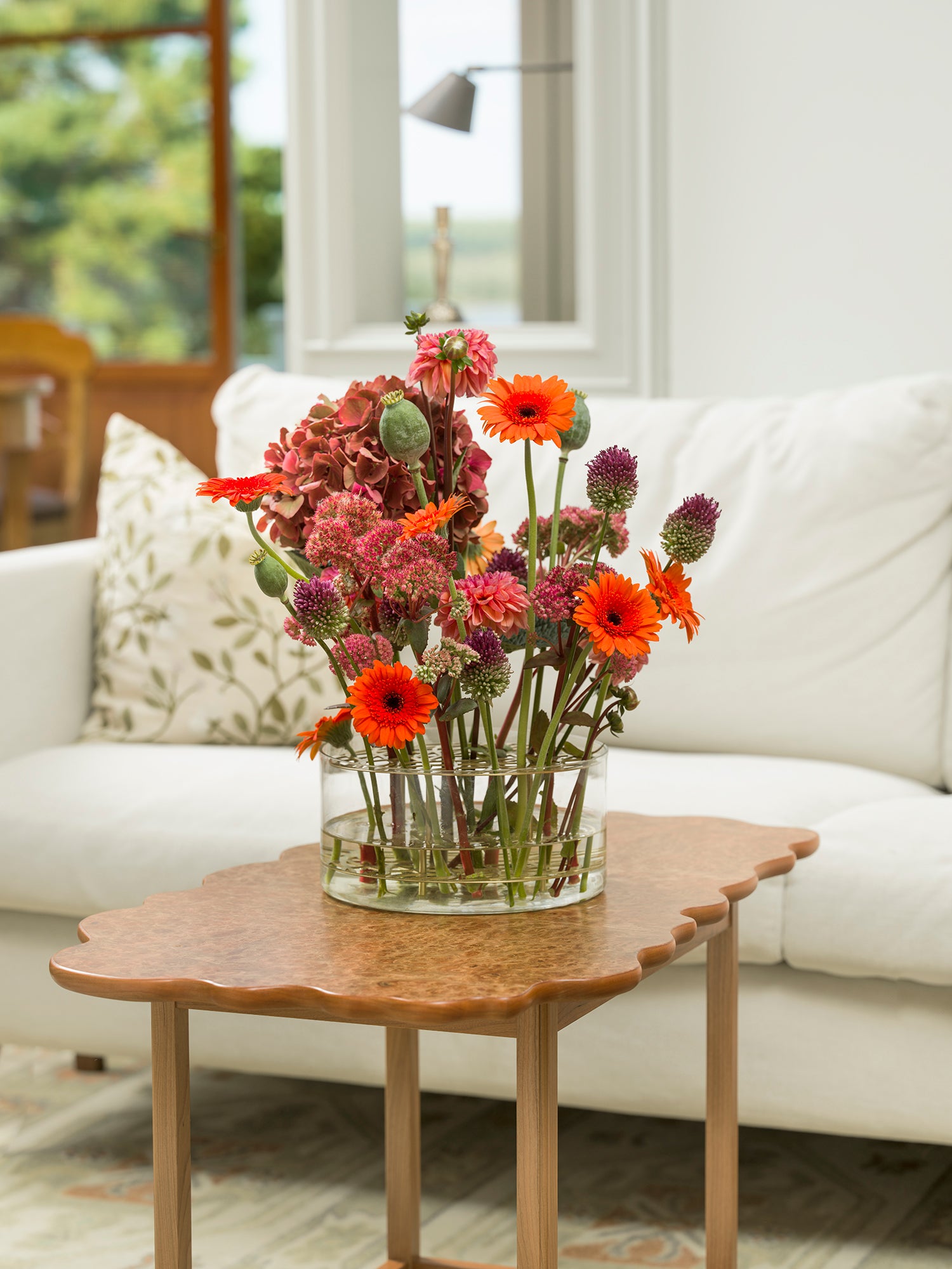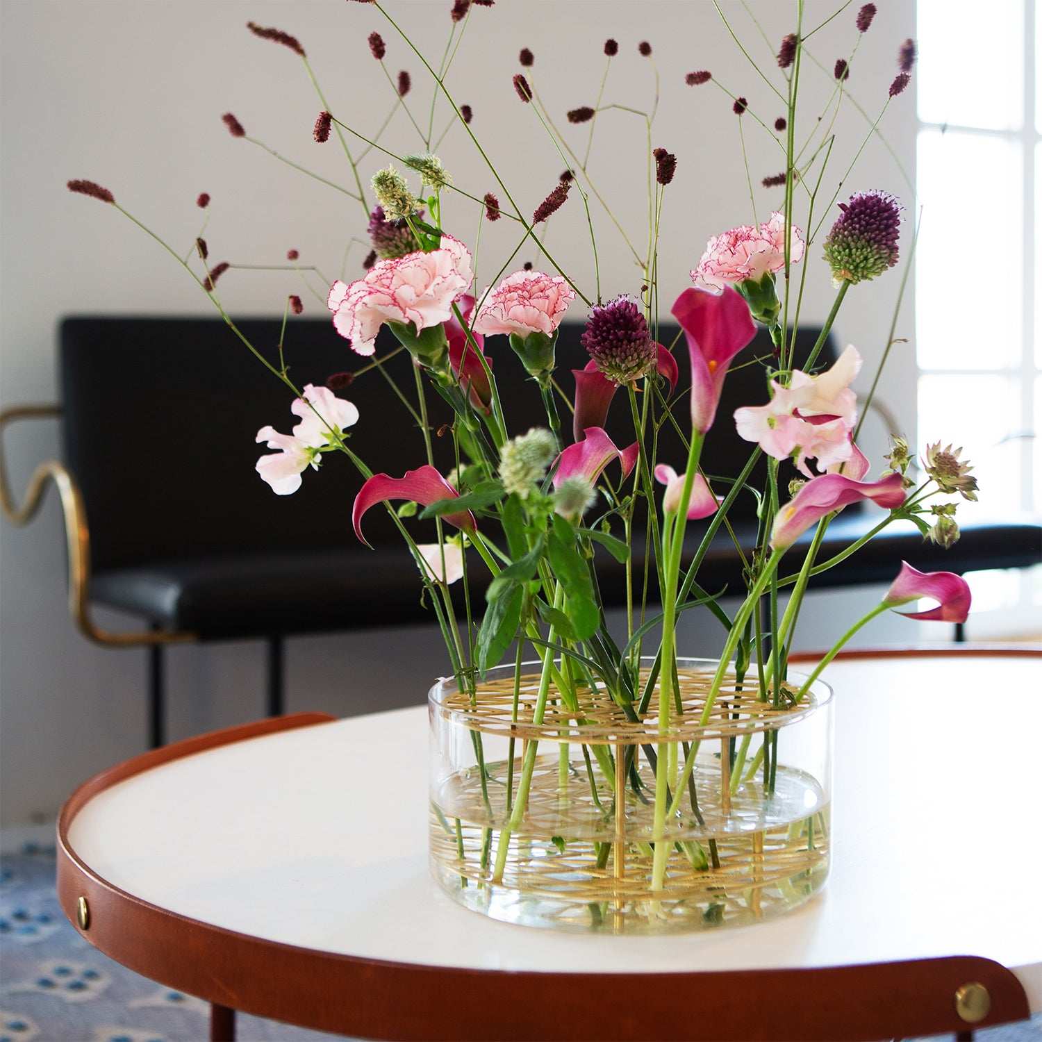 The Äng Vase is designed to let each flower stand beautifully on its own. Featuring a decorative brass insert with an intricate pattern, it transforms any floral arrangement into an elegant, sculptural display. The insert gently supports each stem, allowing for a harmonious and organized composition. Crafted from mouth-blown clear glass in Böhmen, Czech Republic, and paired with a brass insert, this vase is both a functional vessel and a work of art.