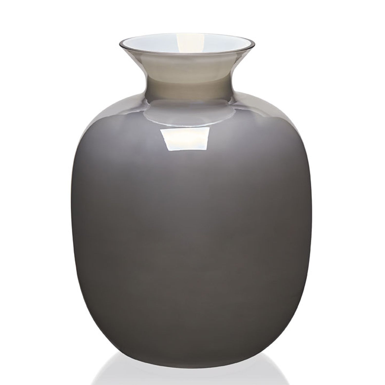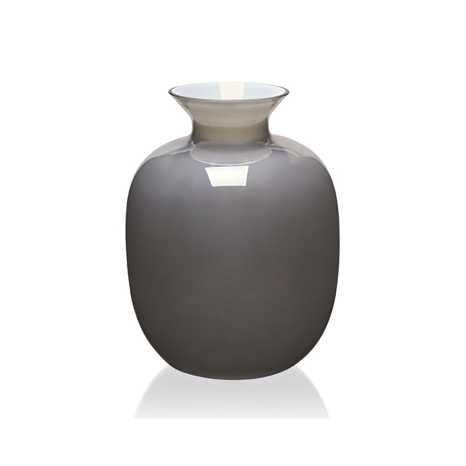 A beautifully crafted vase in mouth-blown glass characterized by elegant lines and a rich sheen. Available in elgant shades of beige, green and grey, the vase works perfectly with different styles and interiors. Handmade in Italy in cased glass, with two or more fused layers of different colors so the inner layers show through.